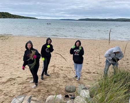 Benzie Central 7th grade students participated with Benzie Sunrise Rotarians and community leaders in the club’s 4th annual Service Above Self Day.